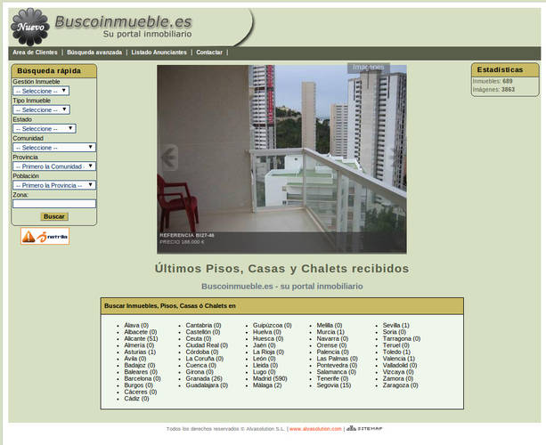 Una de sus características más interesantes era su extenso formulario de búsqueda para encontrar rápidamente cualquier inmueble de interés del usuario. Aún tenemos una copia del portal inmobiliario bajo la dirección buscoinmueble.alvasolution.com para quién quiera echar un vistazo y de referencia para nuevos proyectos.